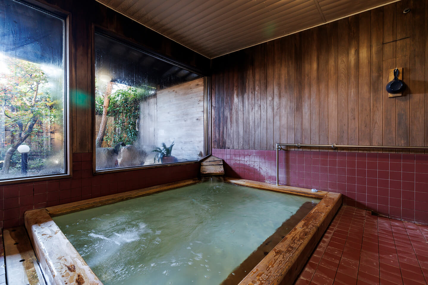 木の香りがふわりと立つ、ヒノキの内湯。