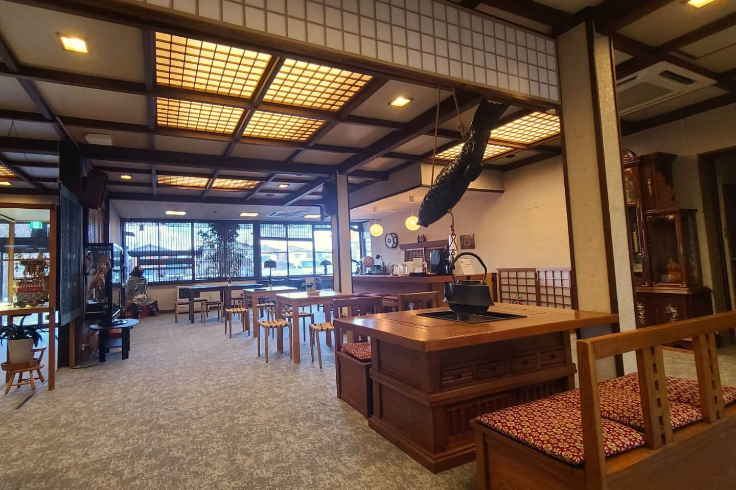 館内は、木の質感を生かした日本建築の佇まいが広がり、どこか懐かしく心落ち着く空間です。