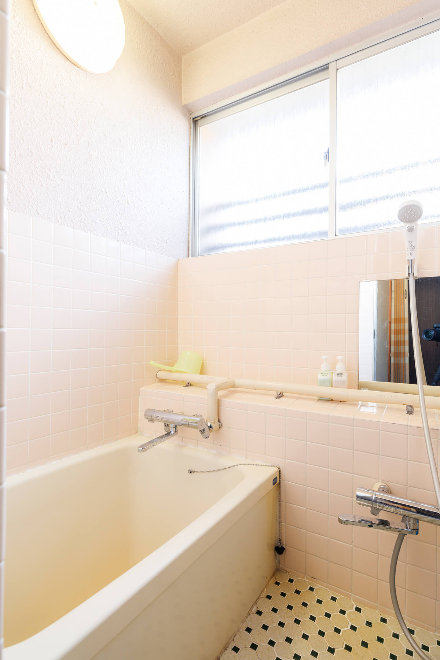 昭和風タイル風呂 ウォシュレットトイレ独立洗面化粧台