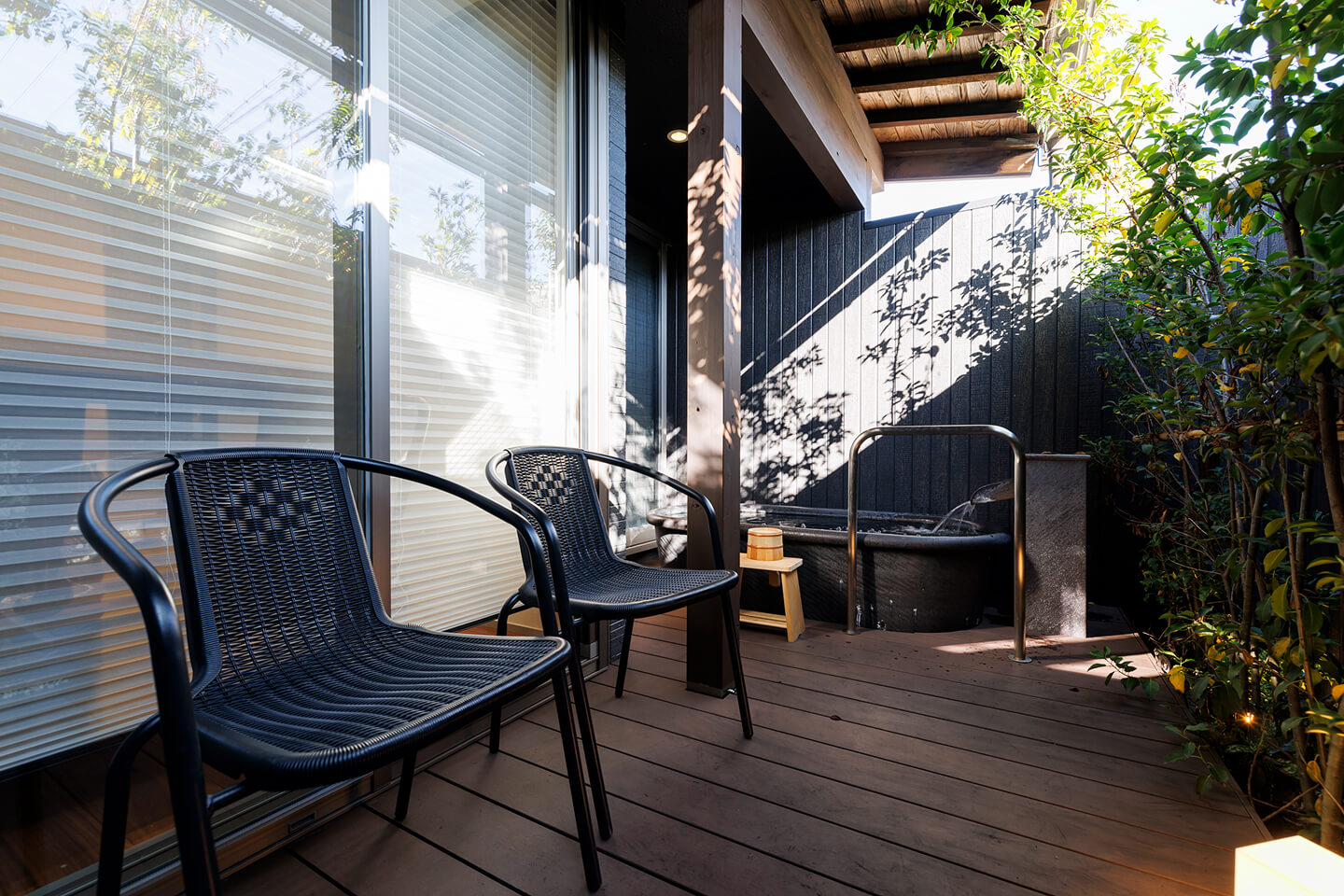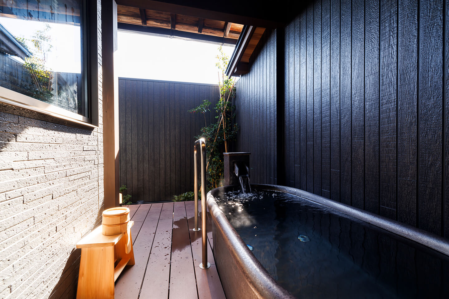 専用露天風呂で気兼ねなく朝夕の湯浴みを楽しめます。