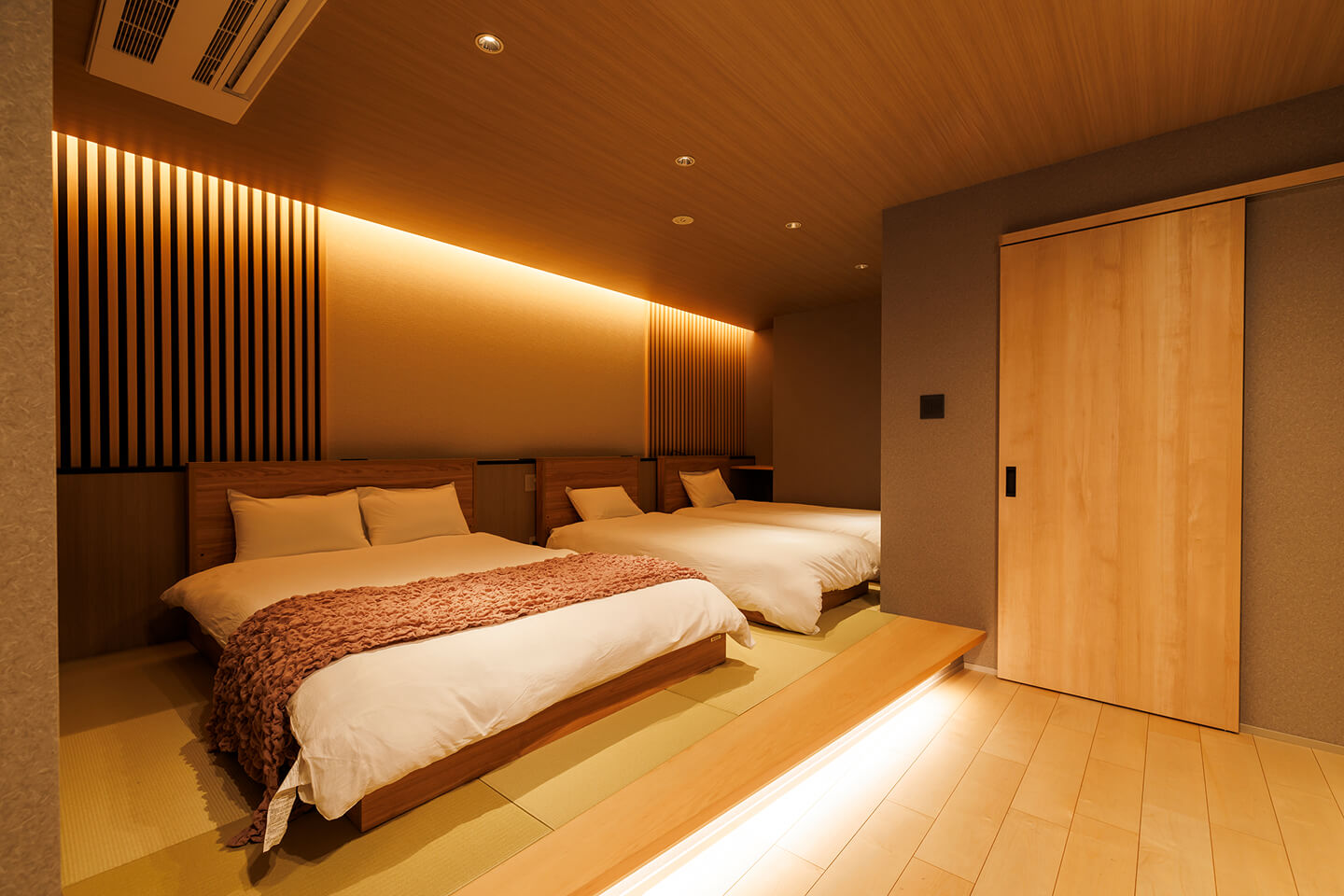 畳敷きのシンプルでクセのない和空間は、どなたにも落ち着いてお過ごしいただけます。